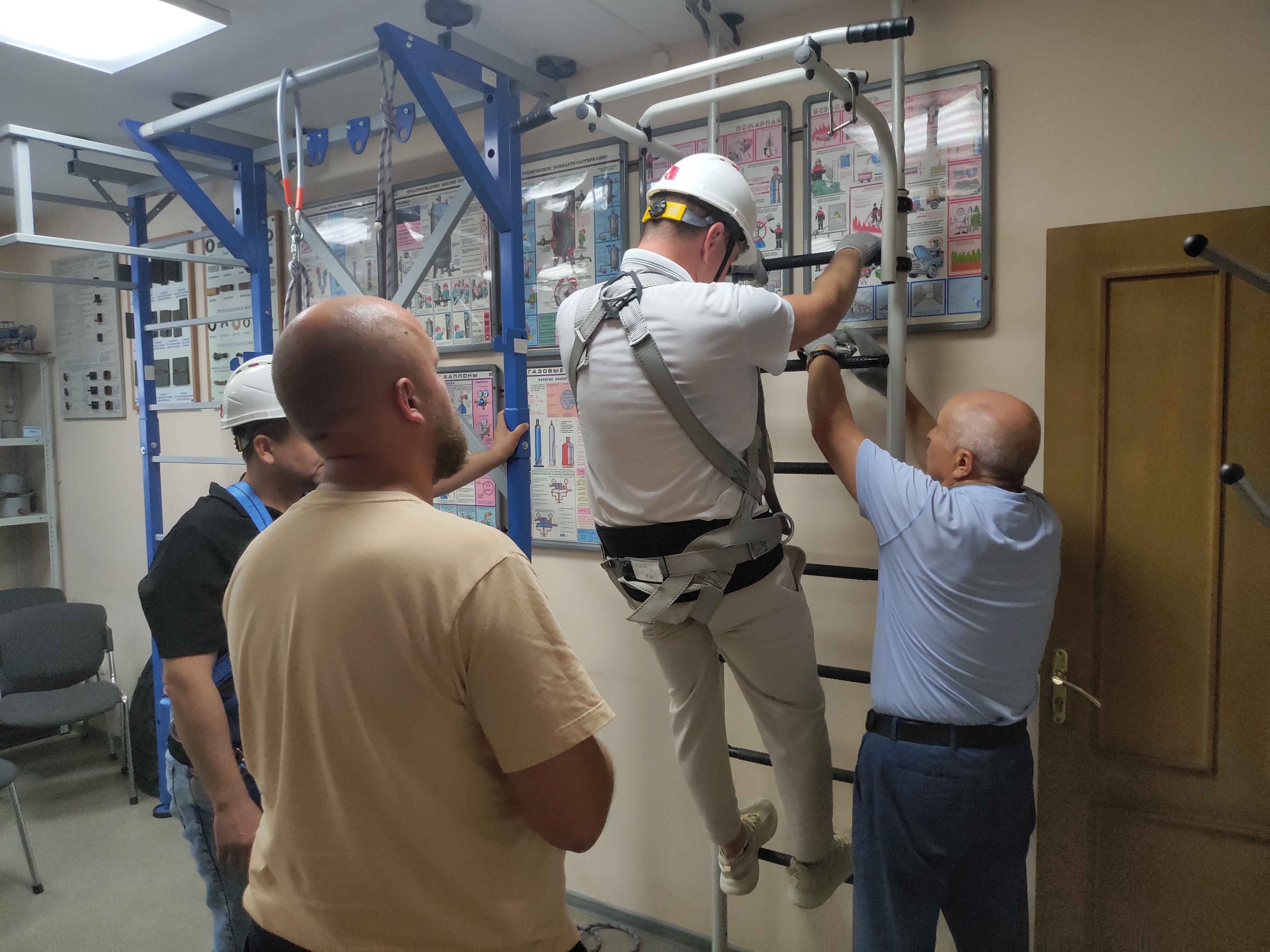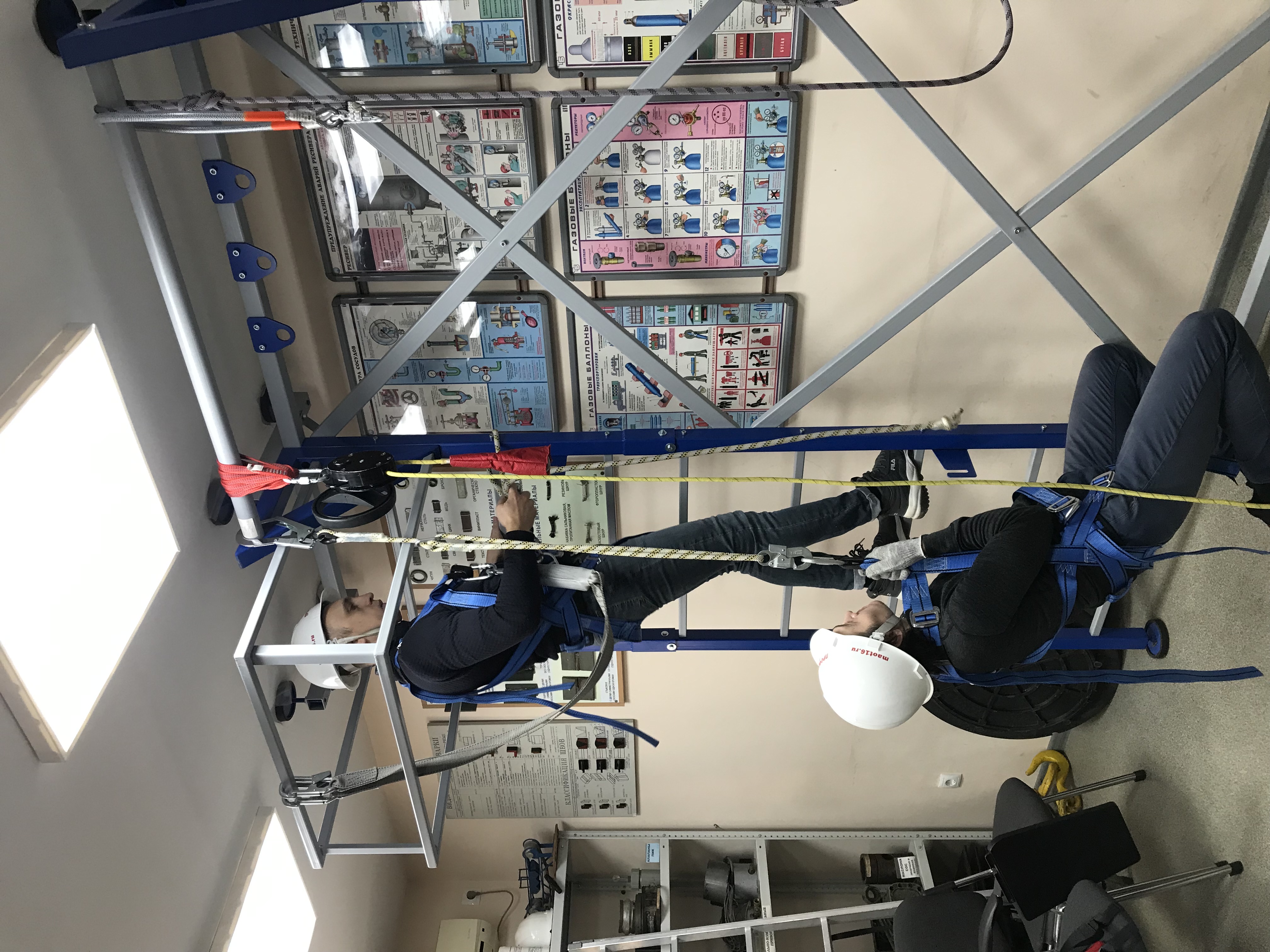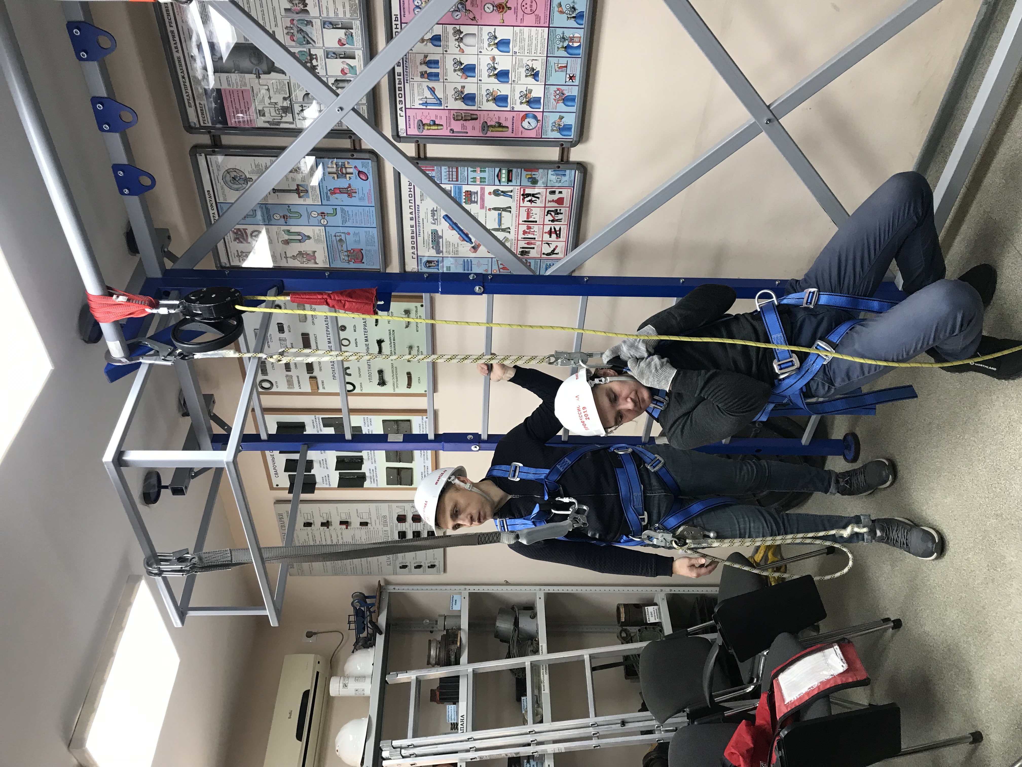 В процессе обучения производится демонстрация практического применения СИЗ для работы на высоте.